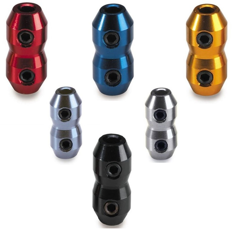 - Anodized aluminum cable clamp with double screws