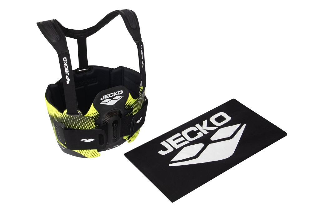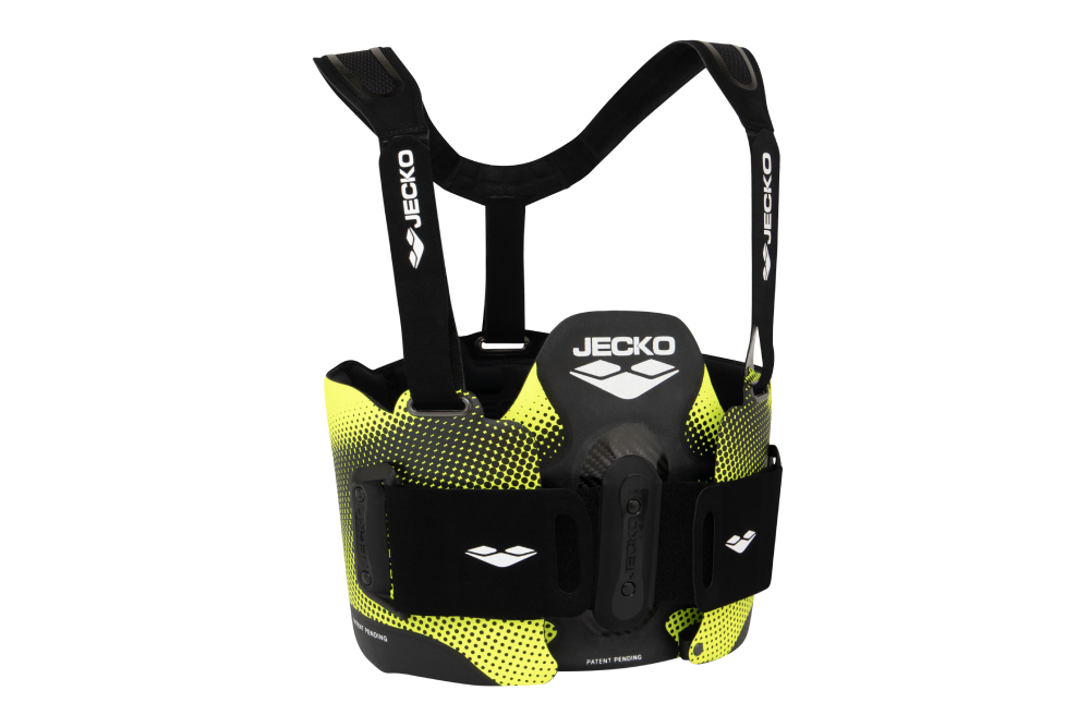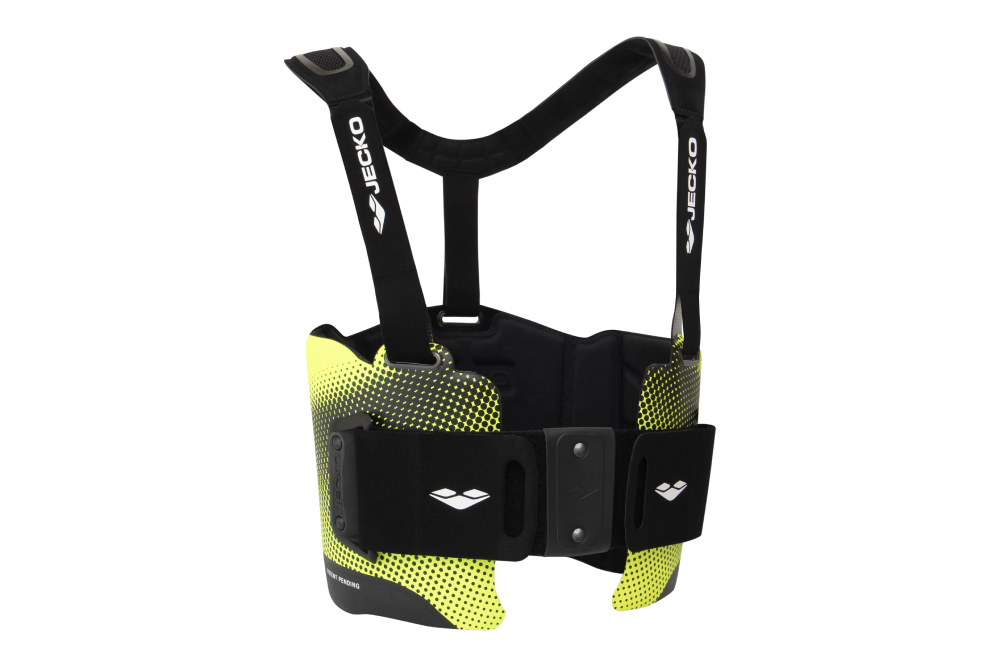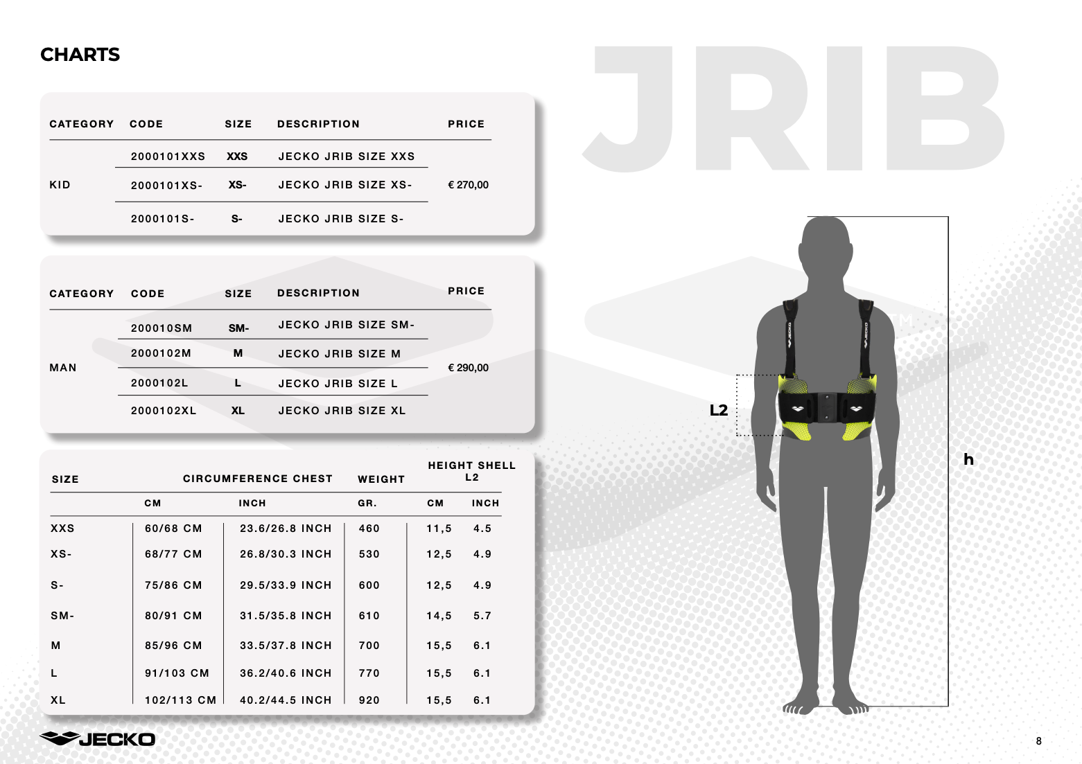 JRIB is totally adjustable from shoulders and abdominal straps, with double elastic band and a special pull tab which facilitates opening.